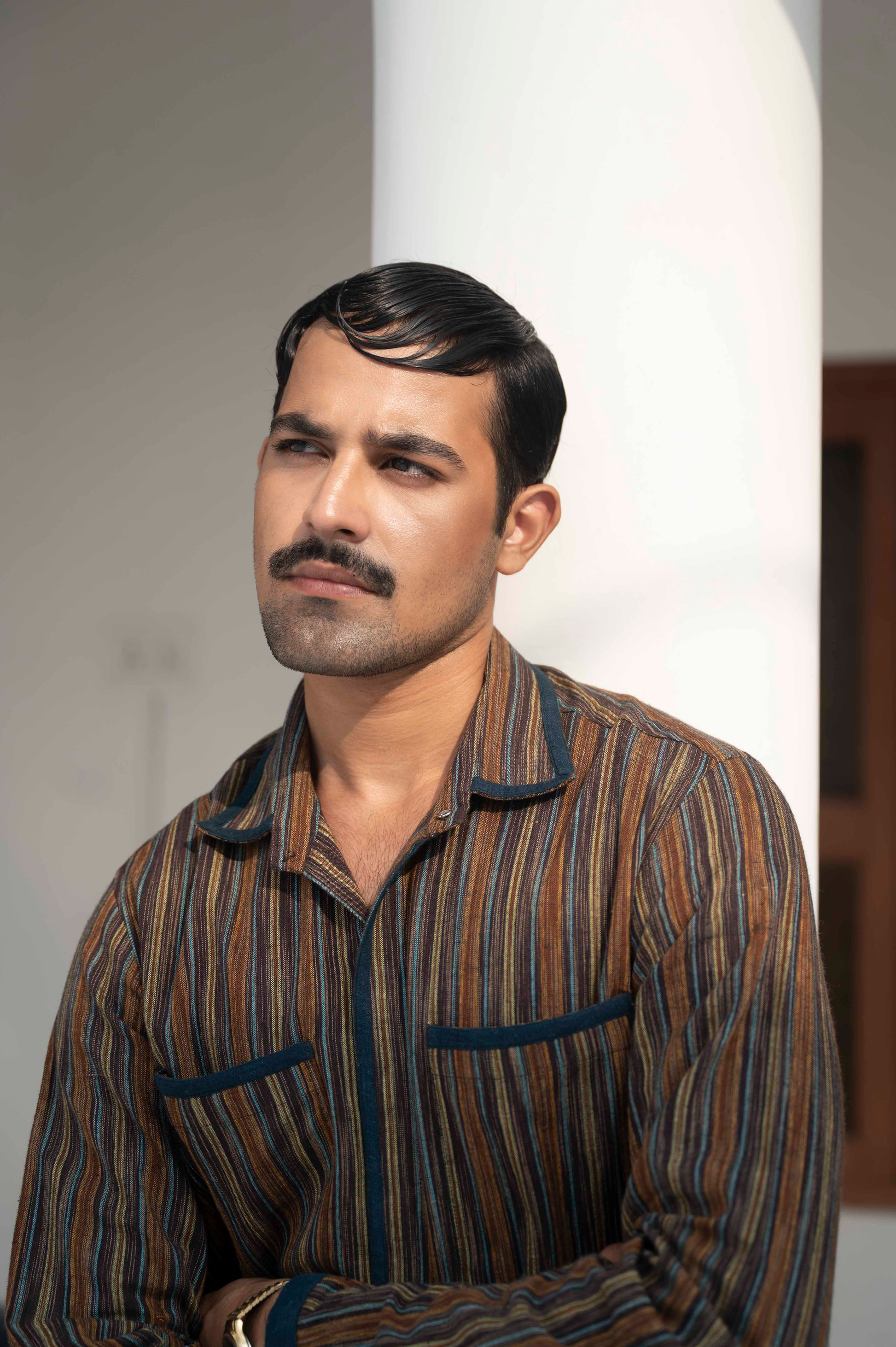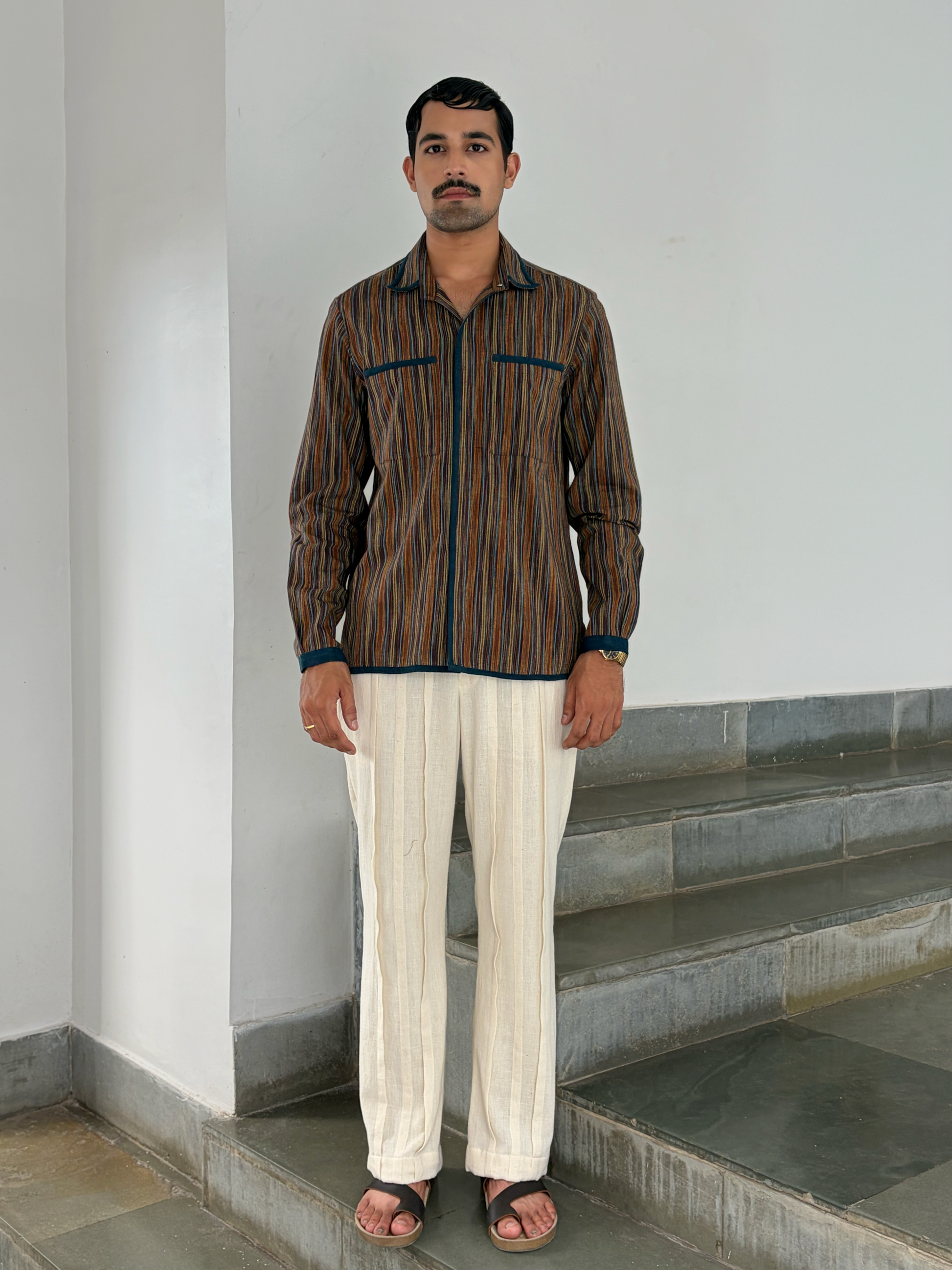 An everyday piece with quiet personality, the Burdwan Shirt features earthy stripes, soft cotton, and quiet contrast patches that feels grounded yet polished.