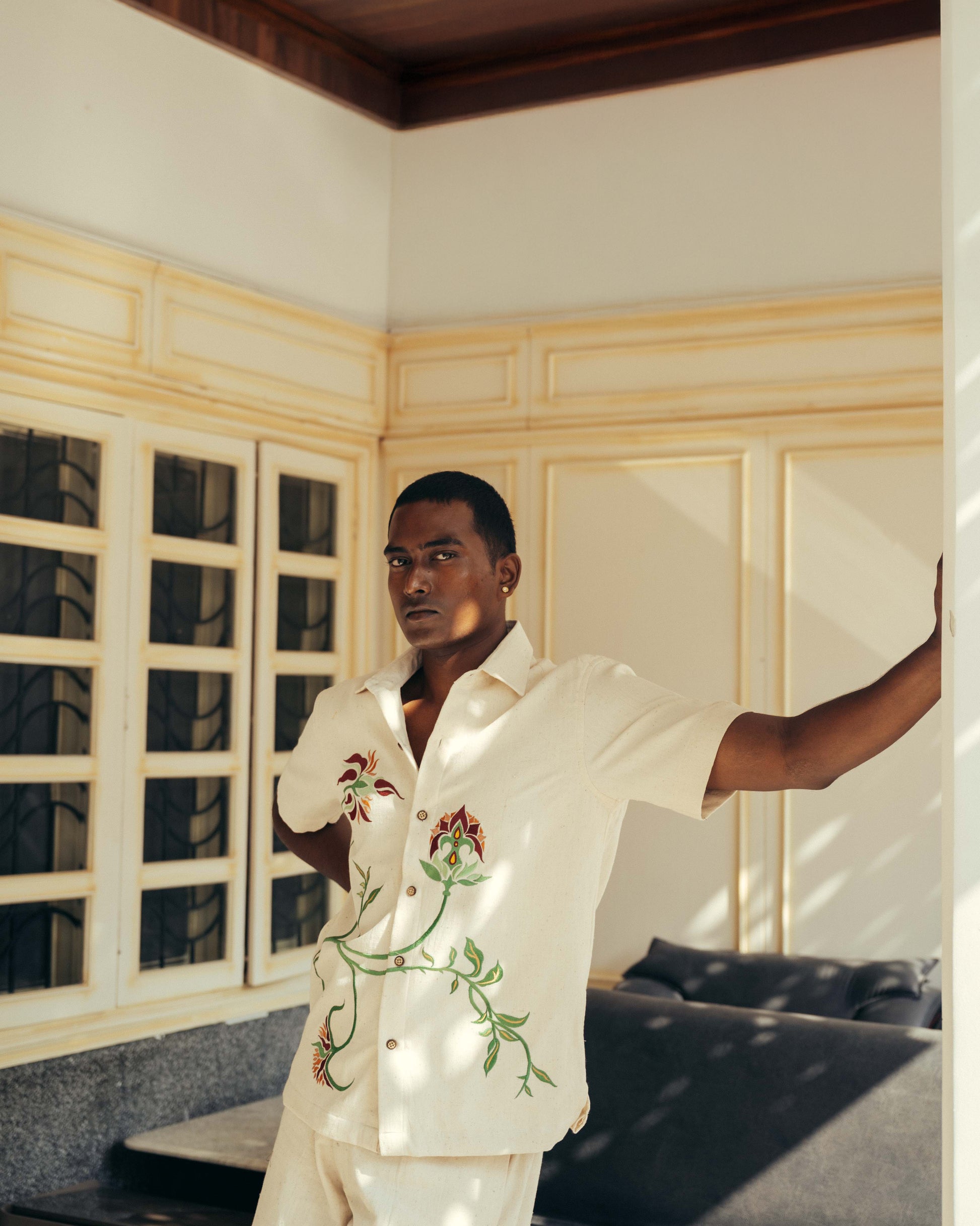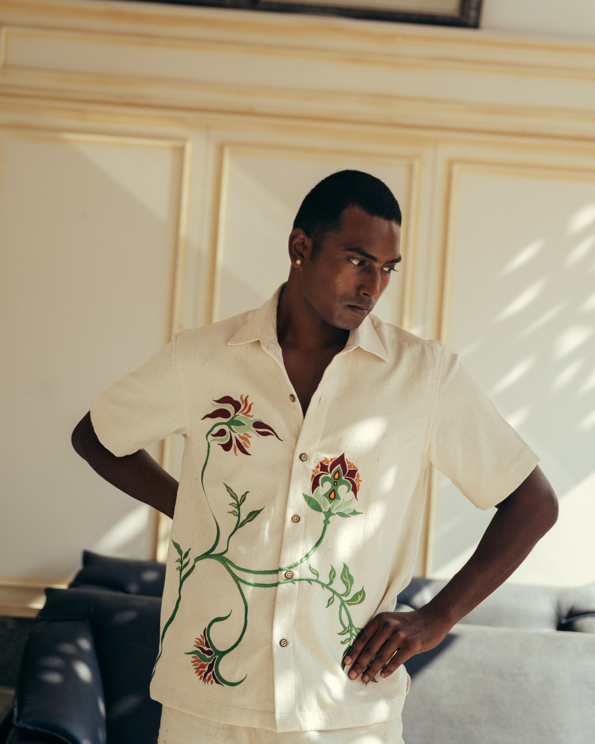 An expression of modern elegance, the Ranikhet Shirt crafted using pure handwoven kala cotton from Gujarat. Lined with a soft mulmul ensuring comfort, the shirt features a carved wooden button closure.